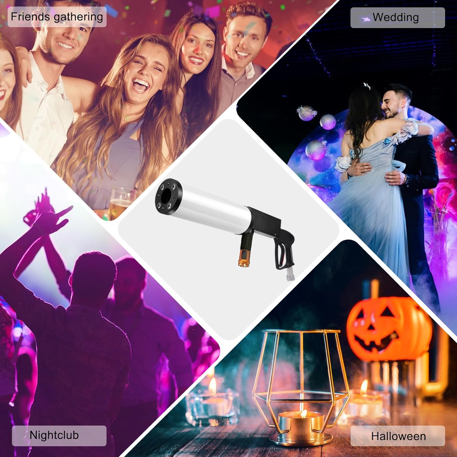 【PERFECT ATMOSPHERE MAKER】CO2 handheld blaster, is suitable for concerts, stage performances, annual company meetings, bars, nightclubs, weddings, TV shows, KTV, filming sites, Christmas, Halloween, New Year, etc. Whether it is a performance event or a music festival site, the smoke will make the scene better and even make the atmosphere reach a climax. You can easily carry it anywhere without much effort due to its lightweight and small size.